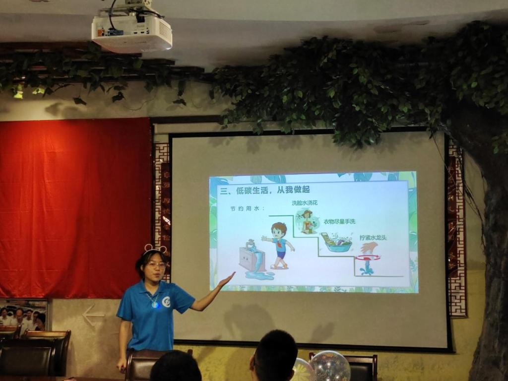 实践队的队员们首先针对小朋友开展了一次有关“低碳环保”主题的公开课,为小朋友们讲解了碳过度排放的危害以及我们应该采取那些行动。课上,小朋友们积极回答问题,现场氛围很是热烈。