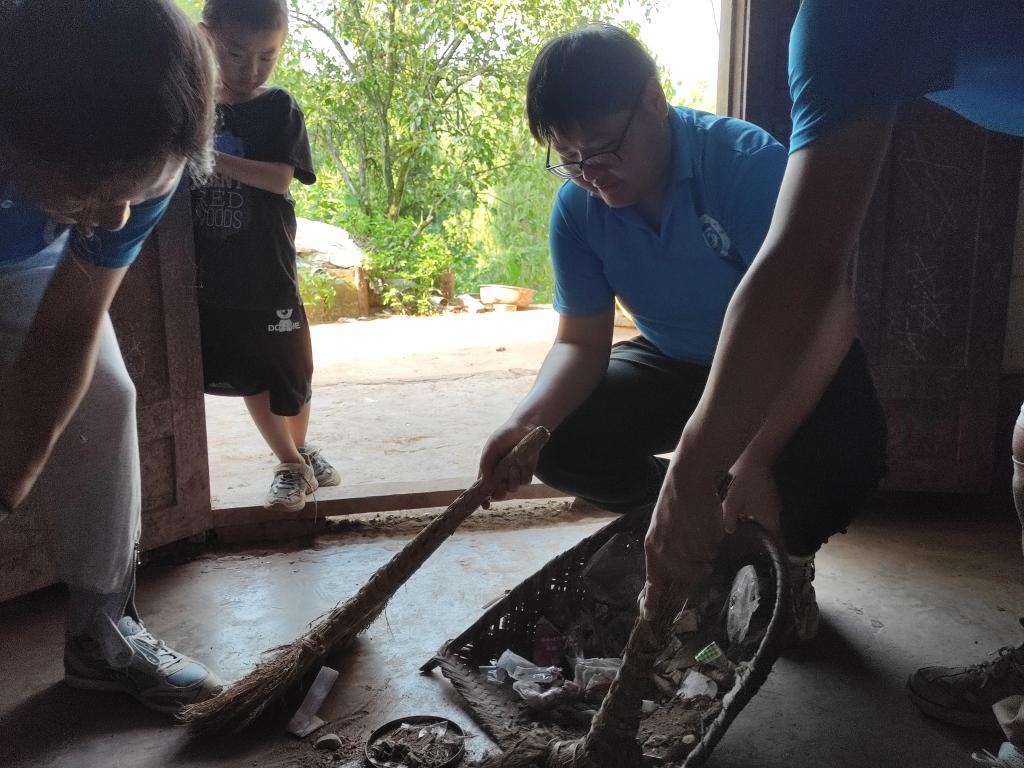在鲜江村党委书记蔡青平的带领下,实践队来到了鲜江村监测户的家中,实践队员不怕脏、不怕累,手持铁锹、扫帚、抹布等工具,帮助村民打扫庭院、清理房屋、擦拭门窗桌椅,整理家中的生活物品,为村民打造干净整洁卫生的生活环境,努力使每个村民家庭环境都达到院内净、卧室净、厨房净、厕所净、个人卫生净和物品摆放规范的“五净一规范”标准。随后,实践队员走访困难家庭、空巢老人,了解乡村发展,倾听村民心声,搜集村民诉求,帮助空巢老人修理水龙头、整理村委会图书室,全力践行“我为群众办实事”实践活动。