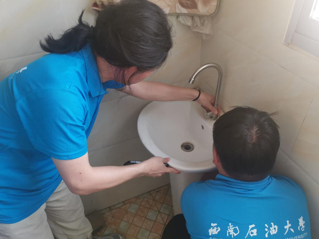实践队员帮助维修村民水龙头