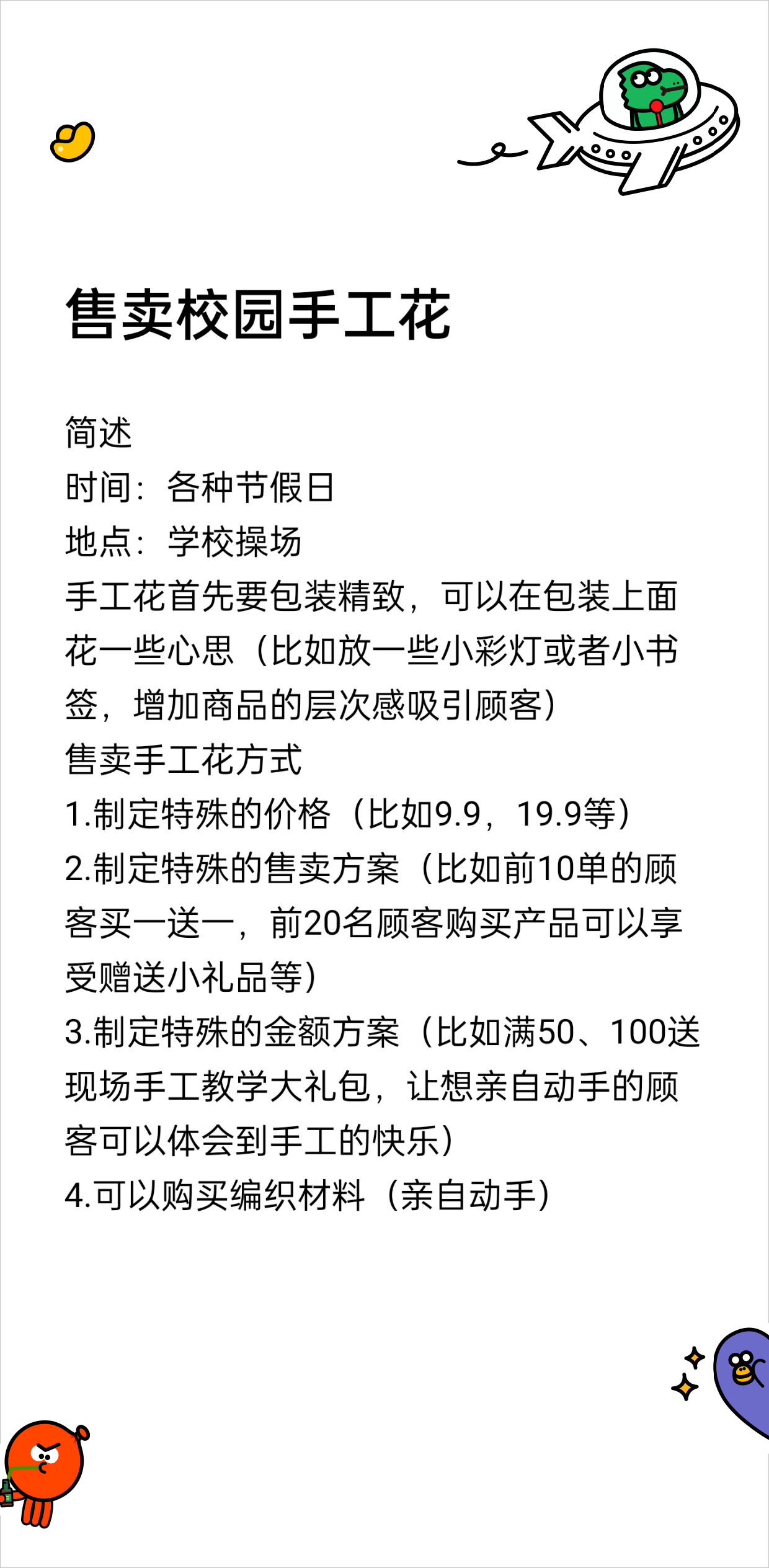 活动前期,协会工作人员在QQ群向大家告知了活动的相关注意事项,提醒同学们认真思考生活中的创业商机,确认其科学性,可行性。活动正式开始时,工作人员发布收集表,由于同学们十分踊跃地填写表格,在短时间内我们就收集了大量的创业点子,比如在校园内建立二手书回收站、开设跑腿业务、建立校园置换平台、无人猫粮售卖……这些创业点子都体现了石大学子善于洞察先机,具有创业思维的优良品质。活动结束后,协会工作人员对收集到的信息进行了仔细的评选,选出了一部分优秀的创业点子,并将在后续对他们进行一定的奖励。