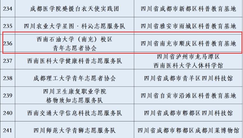 11月10日,团中央青年志愿者行动指导中心、中国青年志愿者协会秘书处联合中国科学技术协会宣传文化部面向全国高校遴选300支大学生科技志愿服务示范团队名单已公布,校区青年志愿者协会成功入选。