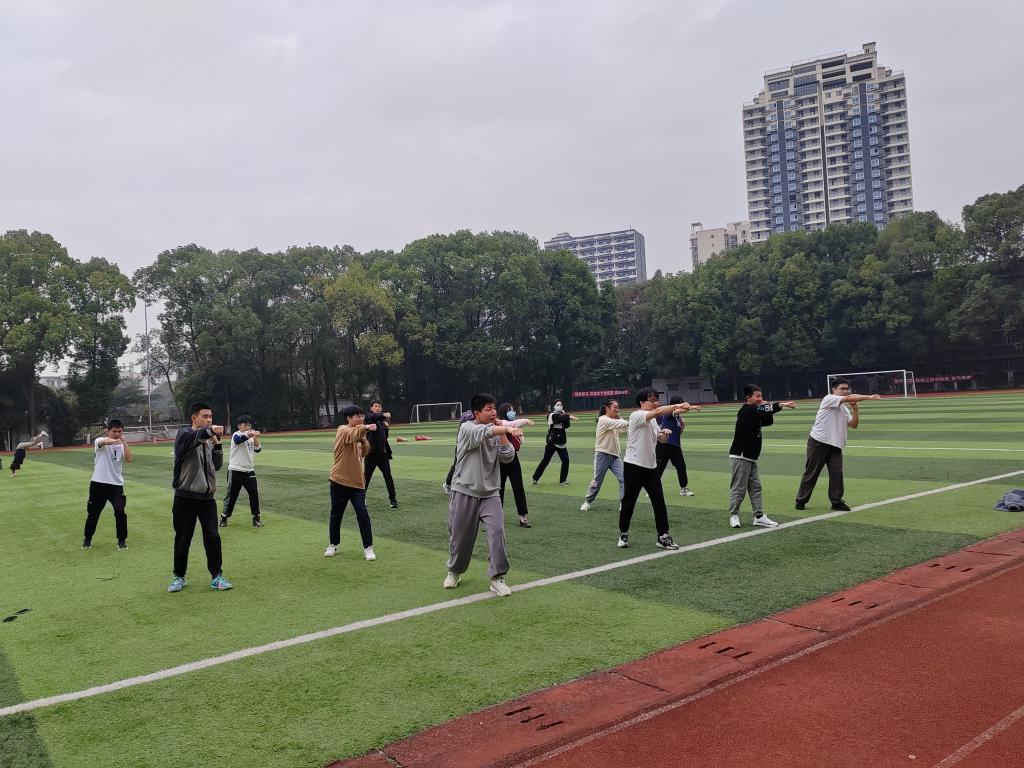 本次活动秉承着爱国主义精神,认真普及国防知识的态度,以此来为同学们创造出良好校园氛围。活动开始前,协会各理事对本次军事训练活动进行宣传讲解以及相应的物资准备,并落实好安全保障工作。活动过程中,军事理事带领同学们学习了格斗基本套路一,其中包括预备式,拨挡冲拳等五个招式。同时同学们也积极地与协会理事探讨本次军事训练中的一些方法与技巧,互相交流心得体会。本次训练活动也在同学们的踊跃参与中圆满结束。