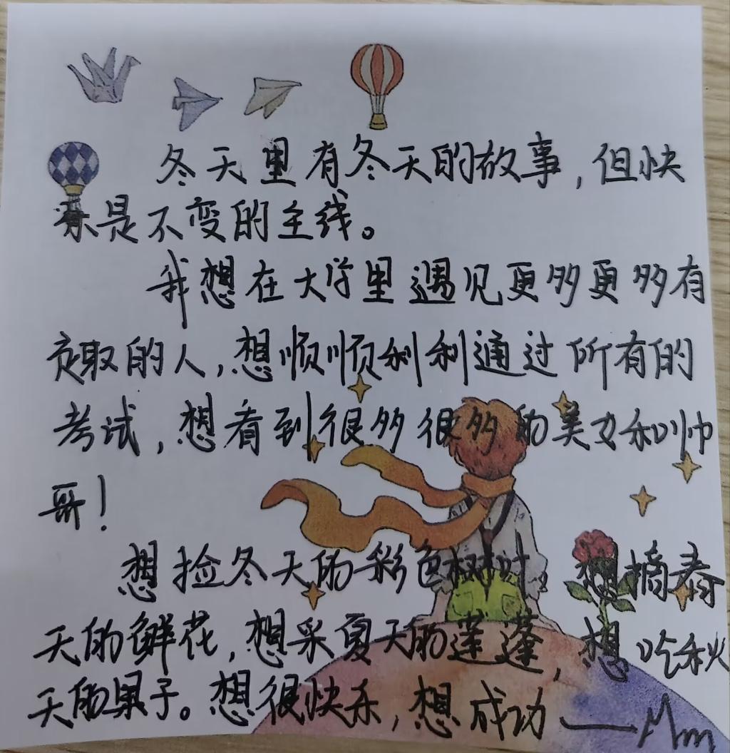 本次活动旨在让同学们对未来充满动力、对身边的人多一份真情。本次活动的成功举办,不仅有利于同学们内心对他人情感的真实表达,也让大家有了对自己未来的殷切期望。