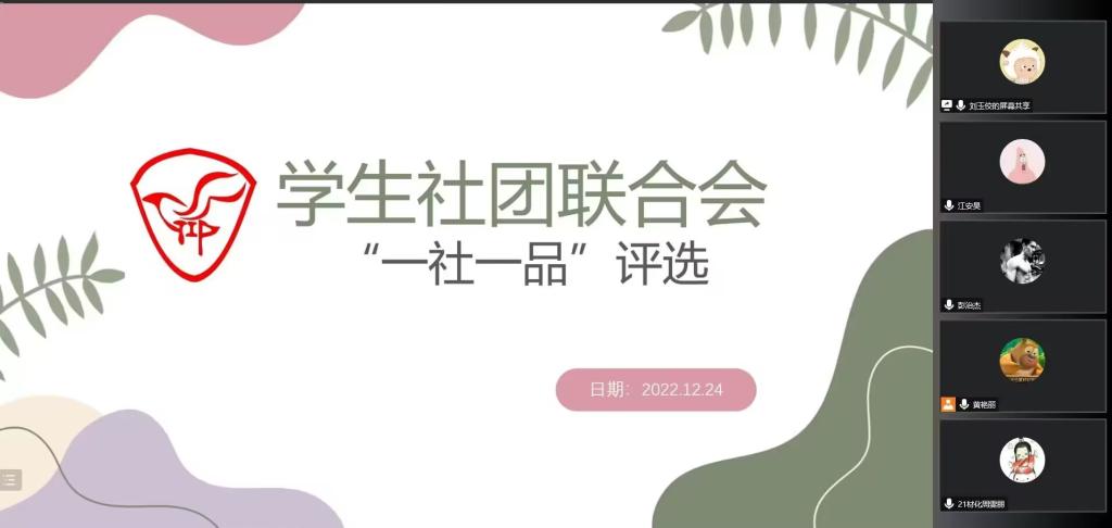 为激励各协会努力打造精品活动和社团品牌,切实发挥协会组织在培养学生创新精神、实践能力中的重要作用。校区社团联合会于12月24日在线上举办“一社一品”答辩活动。