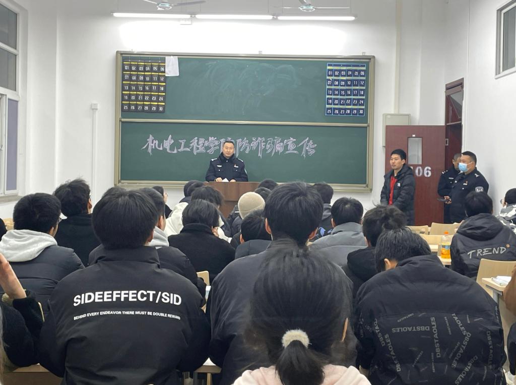 贾晓明警官通过列举近期发生的诈骗案例,重点介绍电信诈骗的形式、特点和危害性。他说,发生在大学生群体身边的电信诈骗主要有网络交友、网购退货、游戏道具交易、冒充熟人借款、以介绍工作为由诈骗等类型,具有隐蔽和跨地域的特点,对社会危害极大。部分学生心理承受能力较差,受骗后容易因心理失衡引起不良后果。贾晓明警官强调,在平时的学习生活中,同学们要主动学习反电信诈骗知识,增强个人对电信诈骗的识别防范能力,不断增强个人安全防范意识,谨慎交友,遇事多与家人、老师交流沟通,遵守校纪校规,让犯罪分子无可乘之机。