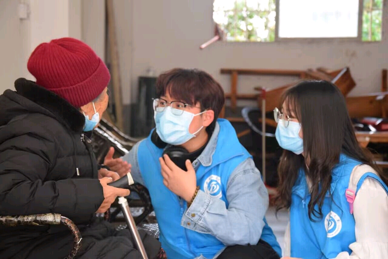 志愿者与老人聊天,关心老人身体状况
