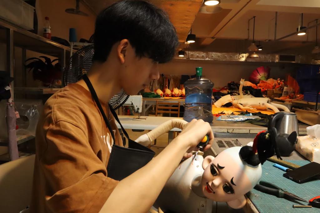 青马班第二组小组成员体验大木偶制作过程