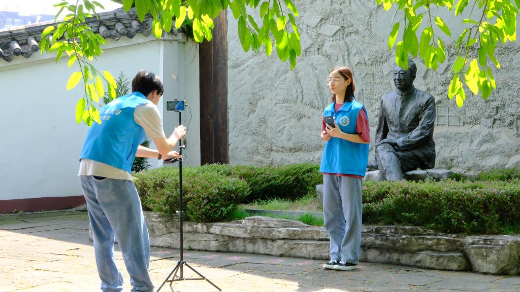 直播组志愿者讲解罗瑞卿雕像