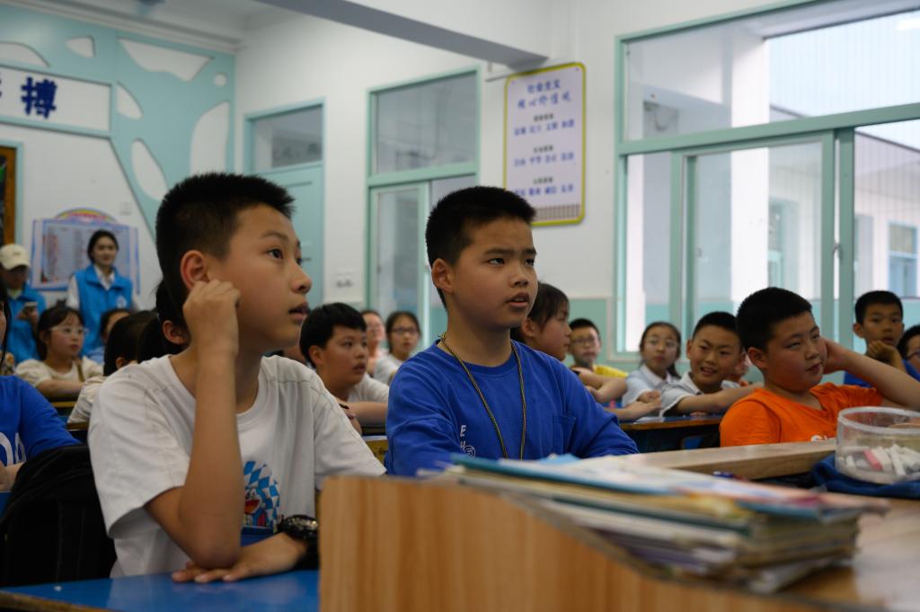 小朋友们认真听志愿者的讲解