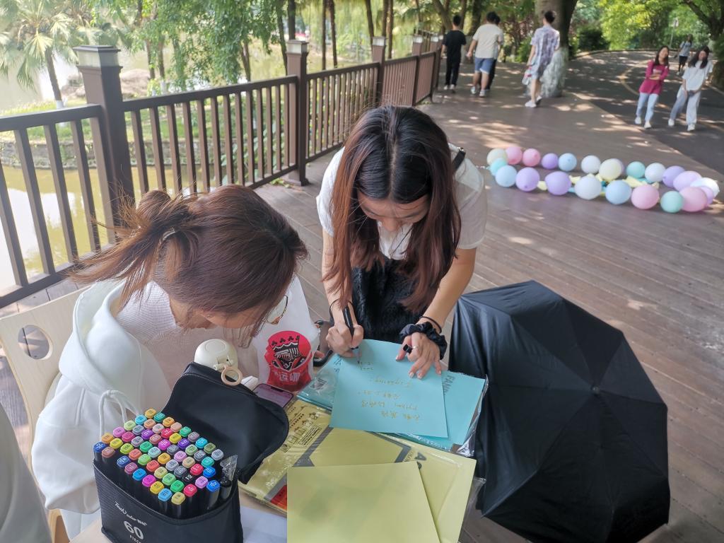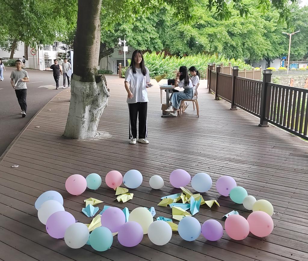 为增进同学间的情谊交流,表达毕业季美好祝愿,舒缓压力,营造健康向上的学院氛围。5月24日,由学生发展部(团委)心理服务中心主办土木工程与测绘学院团学分中心心理健康部承办的心理健康月之“‘纸’因有你,满载山河”折纸祝福活动在龙井湖观景台顺利开展。