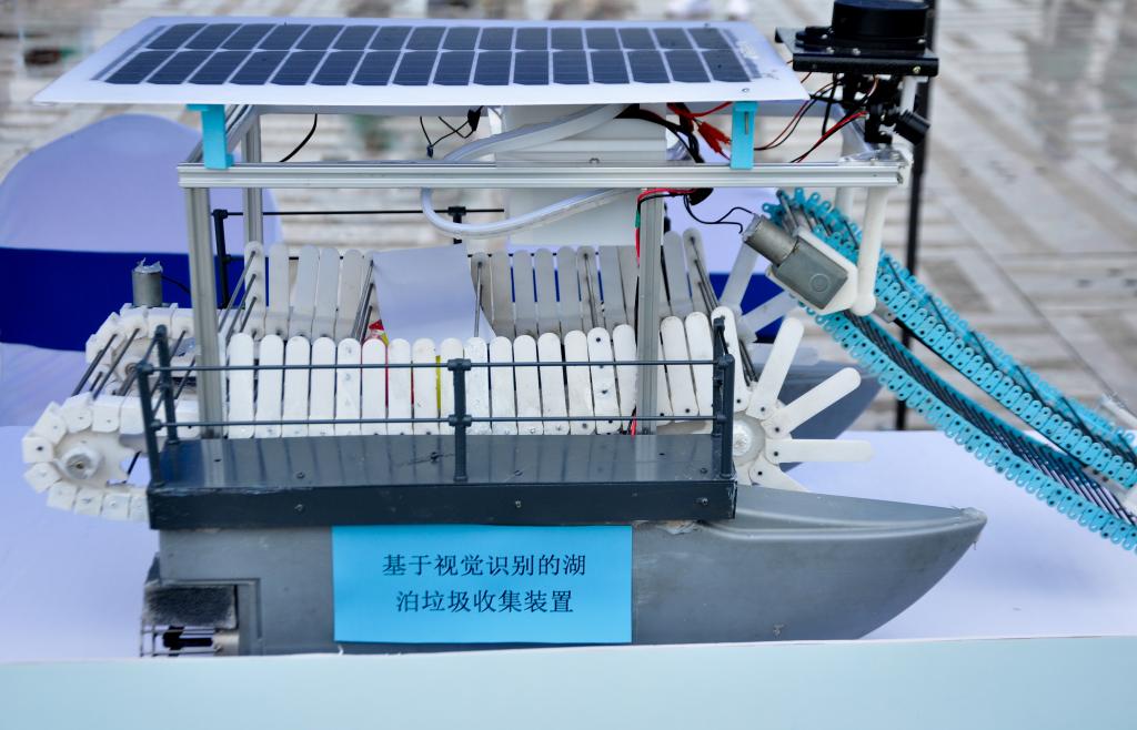 同时,校区还展示了“基于视觉识别的湖泊垃圾收集装置”。这个创新装置利用先进的视觉识别技术,能够自动识别湖泊表面的漂浮垃圾。一旦发现垃圾,它会自动启动,进行收集和清理,有效减轻了垃圾对水域生态环境的影响。