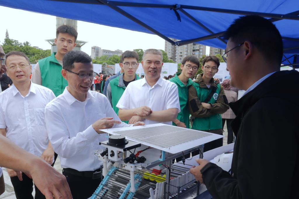 近日,第52个“六·五世界环境日”活动暨南充市“六·五”生态文明宣传教育周启动仪式在南充市政广场举行。南充市人民政府副秘书长袁兴果、市生态环境局局长王洪波、市纪委监委、市委宣传部等领导参与启动仪式。校区教务部工程训练中心选送的三件环保科创作品在启动仪式上亮相,吸引了众多参观者驻足观看。教务部工程训练中心教师王启颜、潘波带队对科创作品进行讲解,学生发展部(团委)团学工作中心李啟祥带领学生方队参加活动。