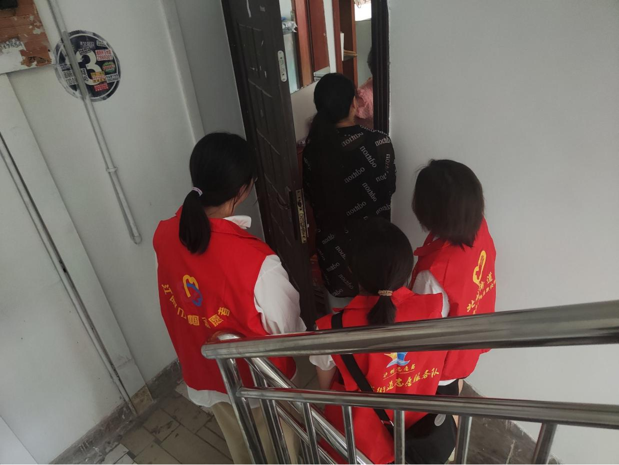 图为志愿者跟随社区人员寻访居民