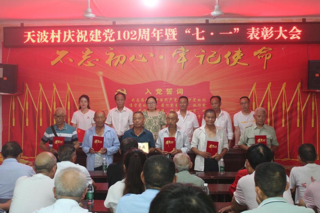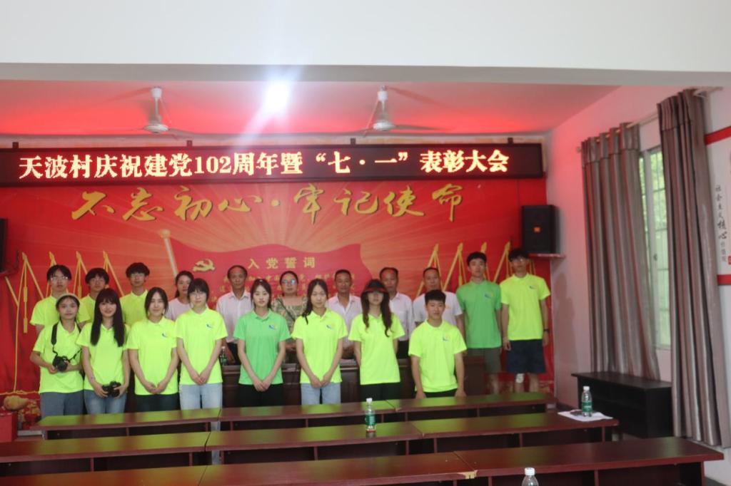新能源与材料学院拨浪鼓志愿服务暑期社会实践队,紧跟党的步伐,担负时代重任,赴天波村参加建党102周年大会。