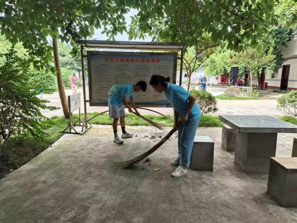 图为实践队成员帮助打扫敬老院