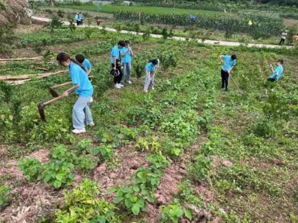 图为实践队队员体验农耕