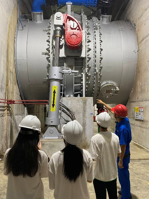 技术人员为实验队讲解蝴蝶阀