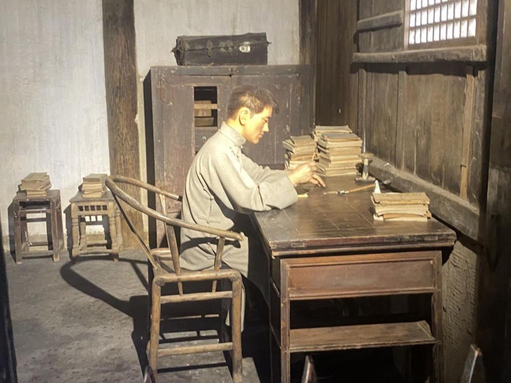 图为罗瑞卿将军年少学习的蜡像