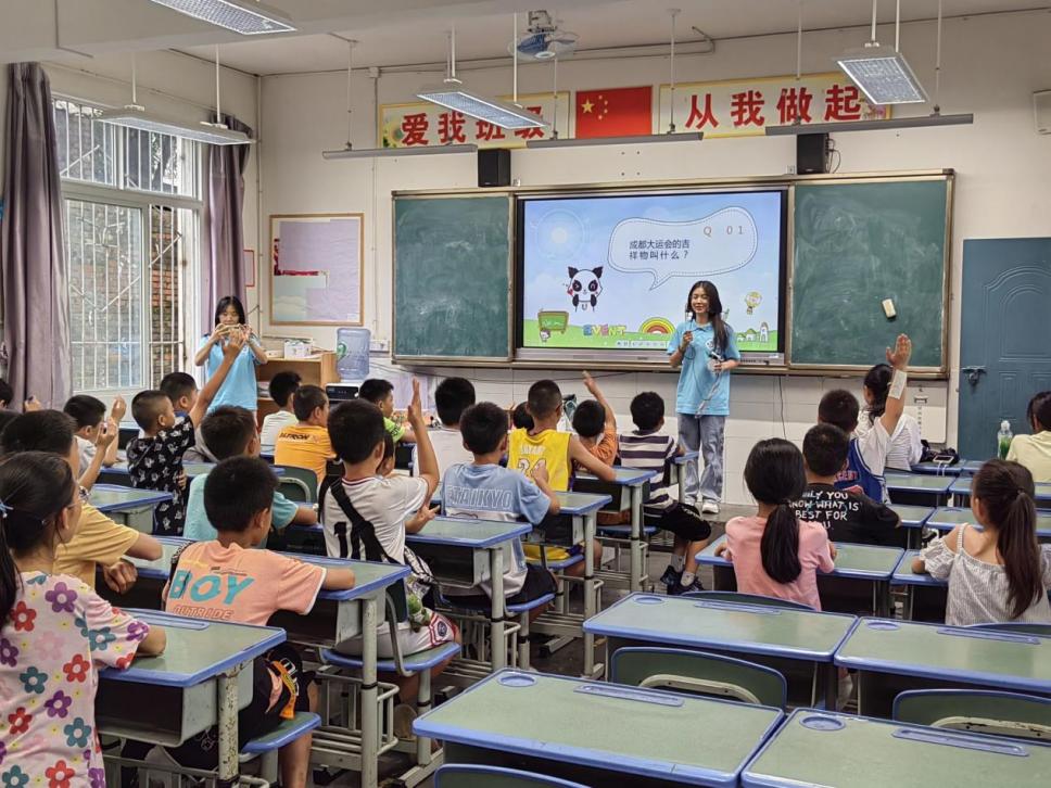 “运动心,大运行”西柚记暑期社会实践队赴简阳市平泉小学开展“多彩大运,你我同行”实践活动。