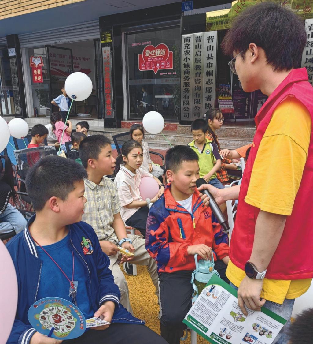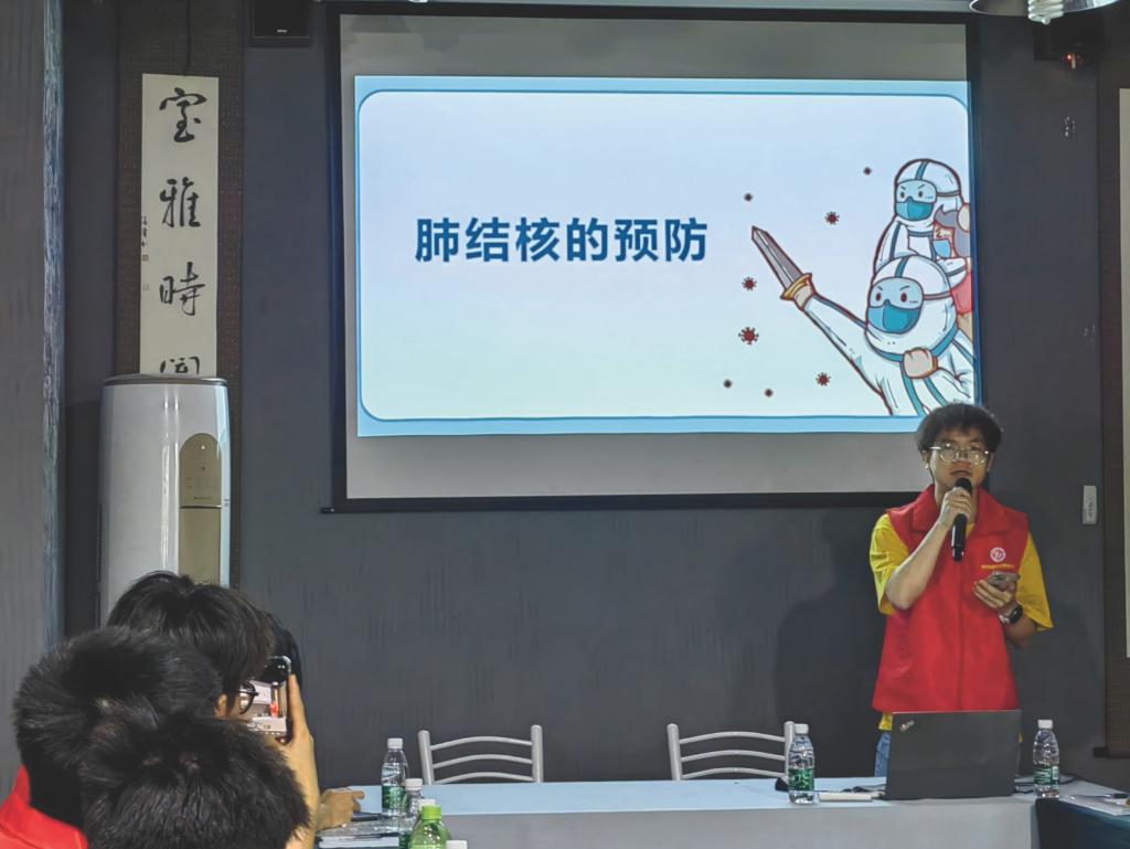 理学院宣讲团小组成员联合营山巾帼志愿者协会,在南充市营山县未成年人保护工作站,开展肺结核相关宣传活动,向学生成功普及肺结核的症状预防和治疗方法,提高了公众的认识和防范意识,以减少肺结核发病率和传播风险。