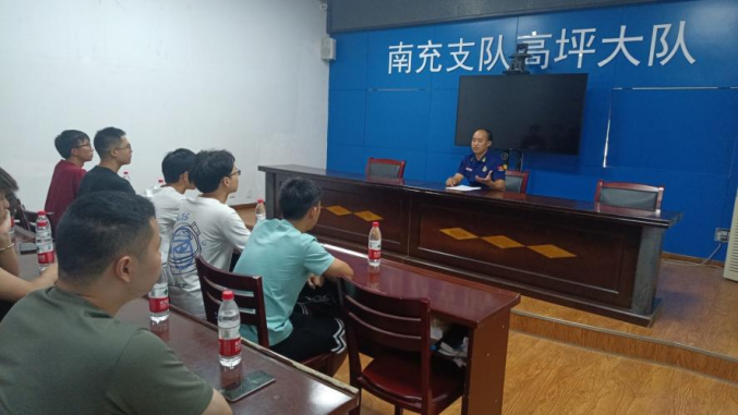 理学院“柚见蓝天,防范未燃”实践队赴南充市消防救援队聆听消防宣讲。消防队负责人就发生火灾如何正确报警、如何扑救初期火灾、如何自救逃生等基本知识进行详细讲解。