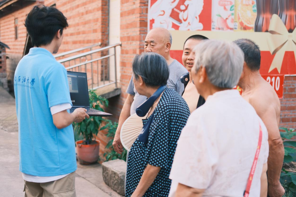 图为实践队队员与村民友好交流