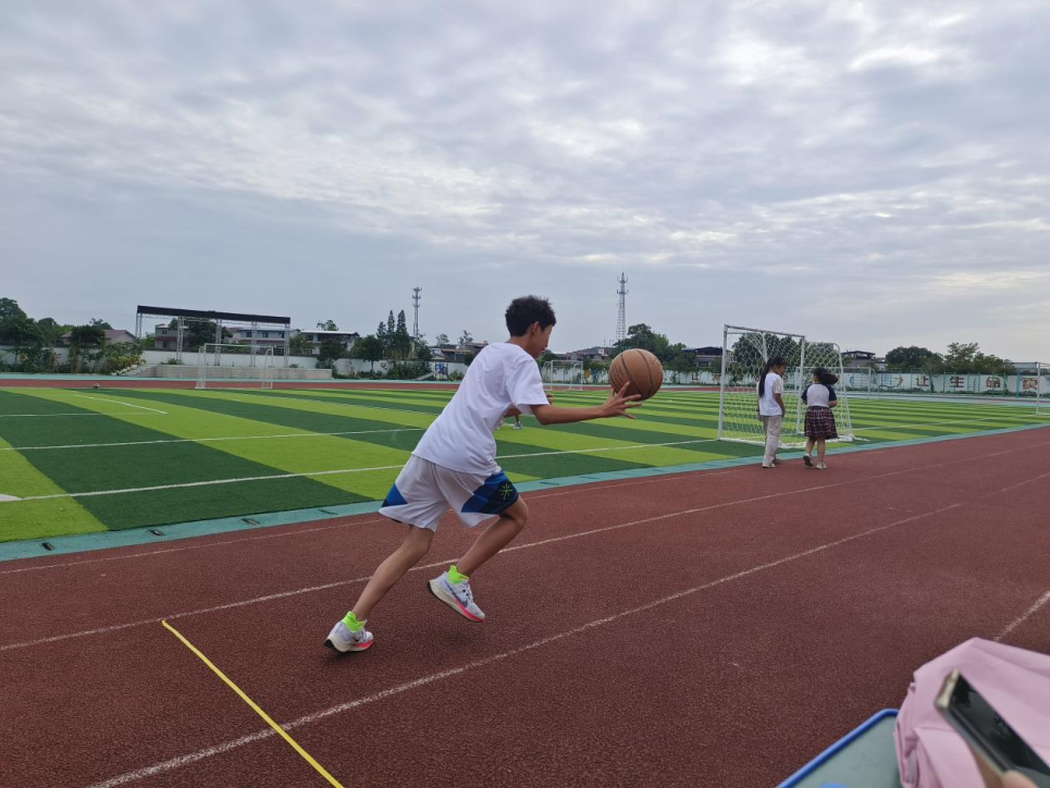 图为学生完成篮球折返跑运动