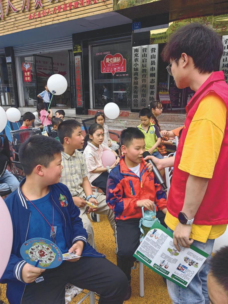 理学院“清肺之光,志愿柚我”实践队宣讲团小组成员联合营山巾帼志愿者协会,在南充市营山县未成年人保护工作站,开展肺结核相关宣传活动,向学生成功普及肺结核的症状预防和治疗方法,提高了公众的认识和防范意识,以减少肺结核发病率和传播风险。
