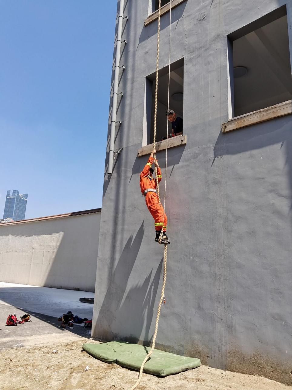 理学院柚见蓝天,防范于未“燃”实践队赴南充消防大队开展以“学习高空绳索速降”为主题的社会实践活动。活动期间,消防员进行高空训练科目展示,同时实践队队员穿好护具后使用绳索从三楼速降到地面,有效提升学生消防安全意识和自防自救能力。