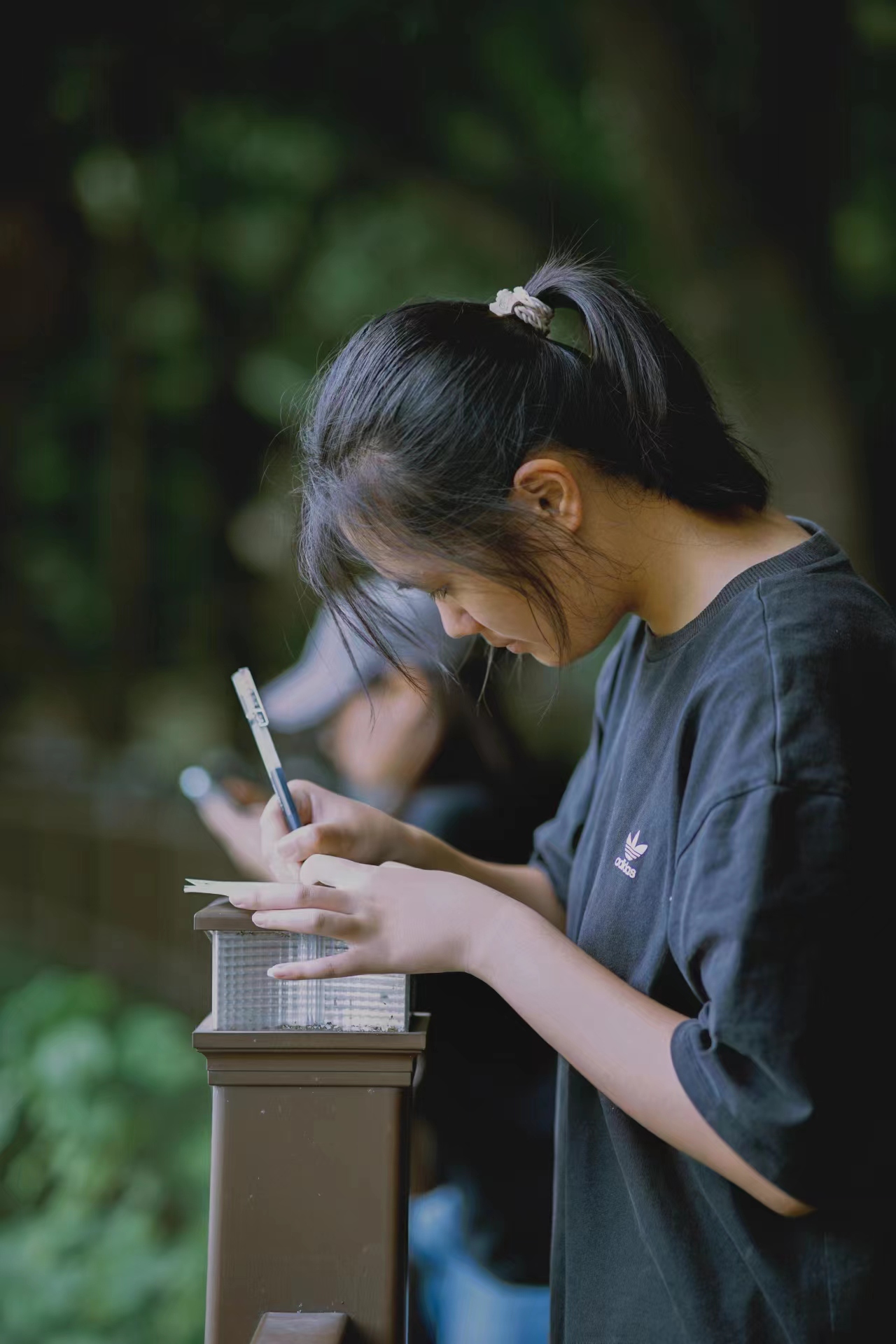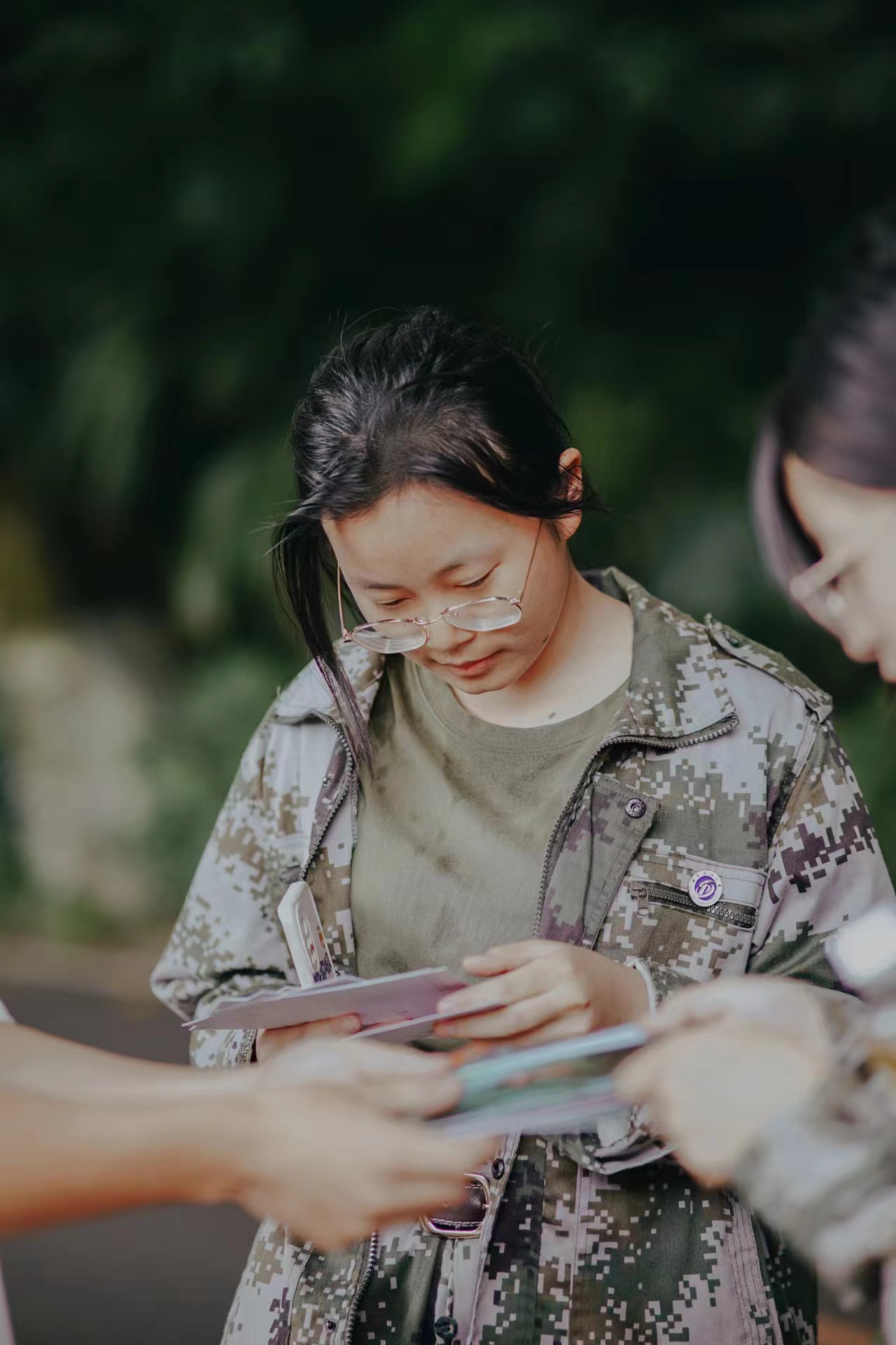 学姐在明信片上书写祝福语