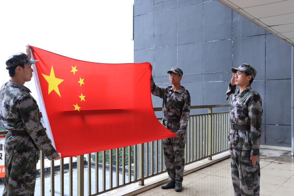 新能源与材料学院学生相约结伴来到龙井湖观景台,在展板上书写对祖国的美好祝愿,与国旗同框礼赞祖国华诞。同时,伴随着2023级新生军事训练的落幕,那一群意气风发的少年迈着有力的步伐,保持整齐划一的动作,向即将来临的祖国华诞展现朝气蓬勃、斗志昂扬的青年形象。他们身着军训服用最标准的敬礼与五星红旗合影,在梦想起航的地方与国旗留下第一张合影。