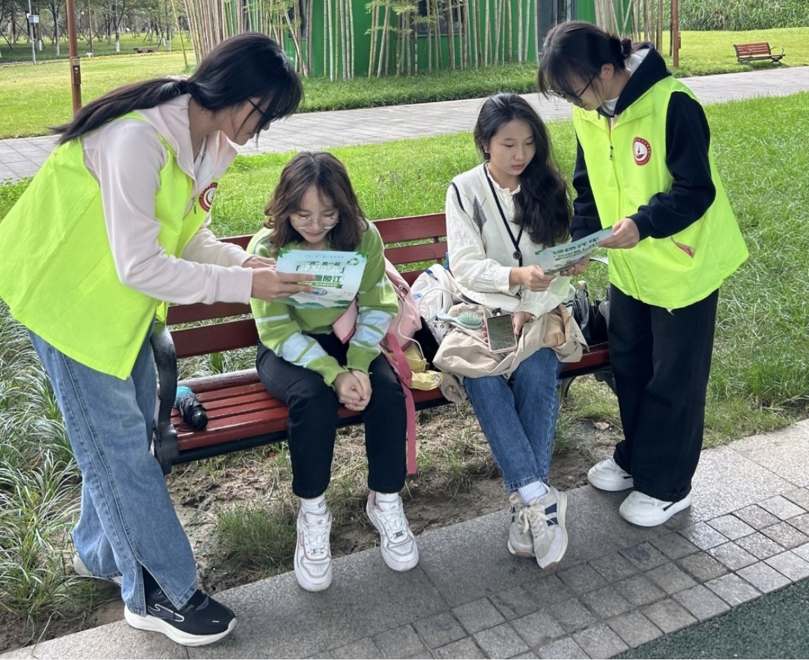 11月11日,经济管理学院青年志愿者协会于印象嘉陵江湿地公园开展“‘西柚’同心,环保步行”宣讲活动。