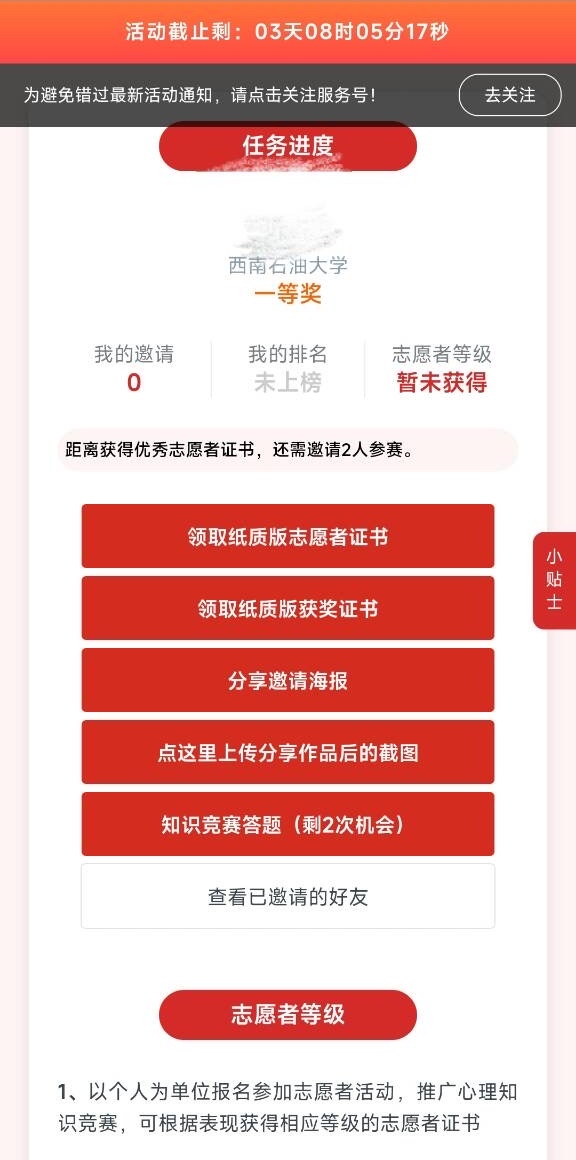此次特色活动旨在搭建一个关注心理健康的平台,以线上答题的方式让同学们基本了解心理知识,提高同学们心理健康意识。
