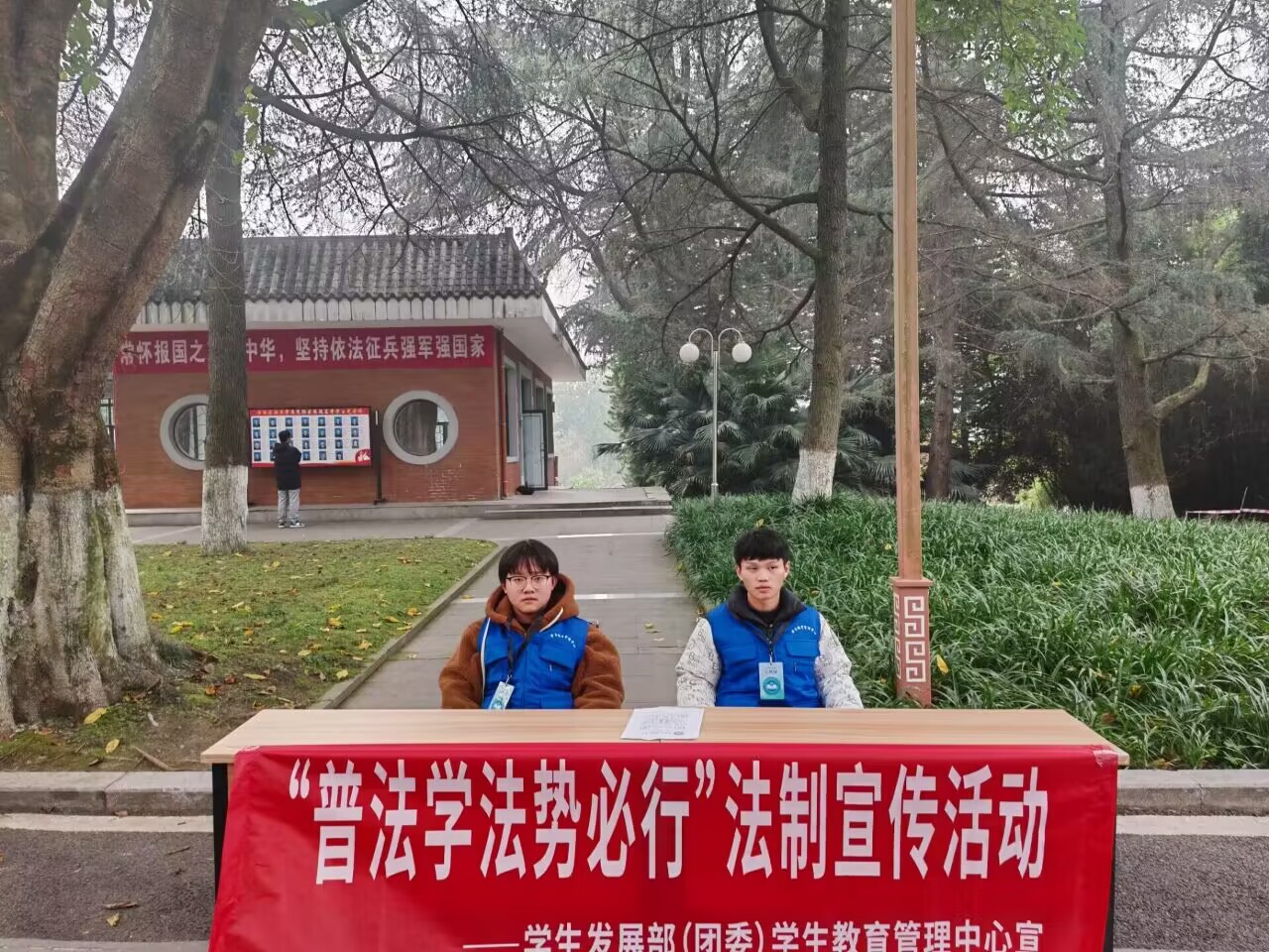 为弘扬宪法精神,深入开展法制宣传教育,向学生普及宪法知识,12月10日上午,学生发展部(团委)在外语村前开展了宪法知识宣传活动。