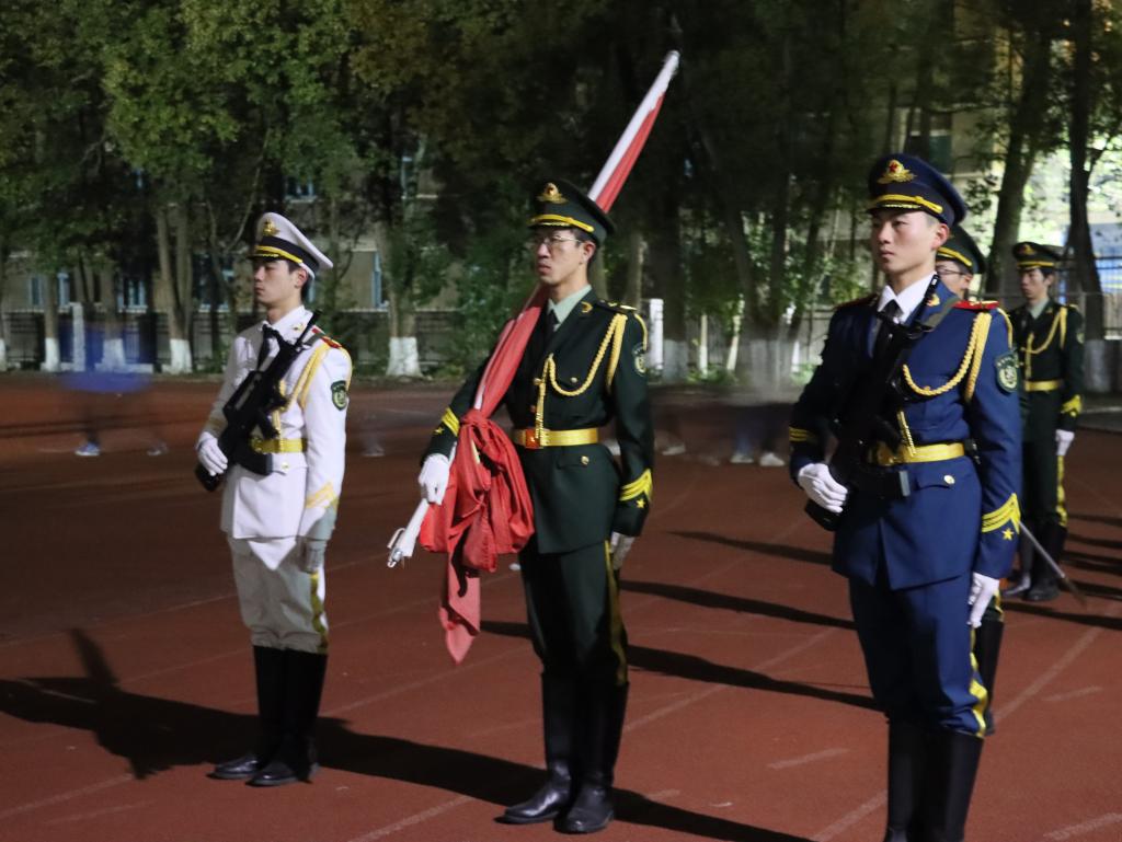 升旗过程中,全体师生列队分明,齐唱国歌,表达出对祖国崇敬与热爱之情。
