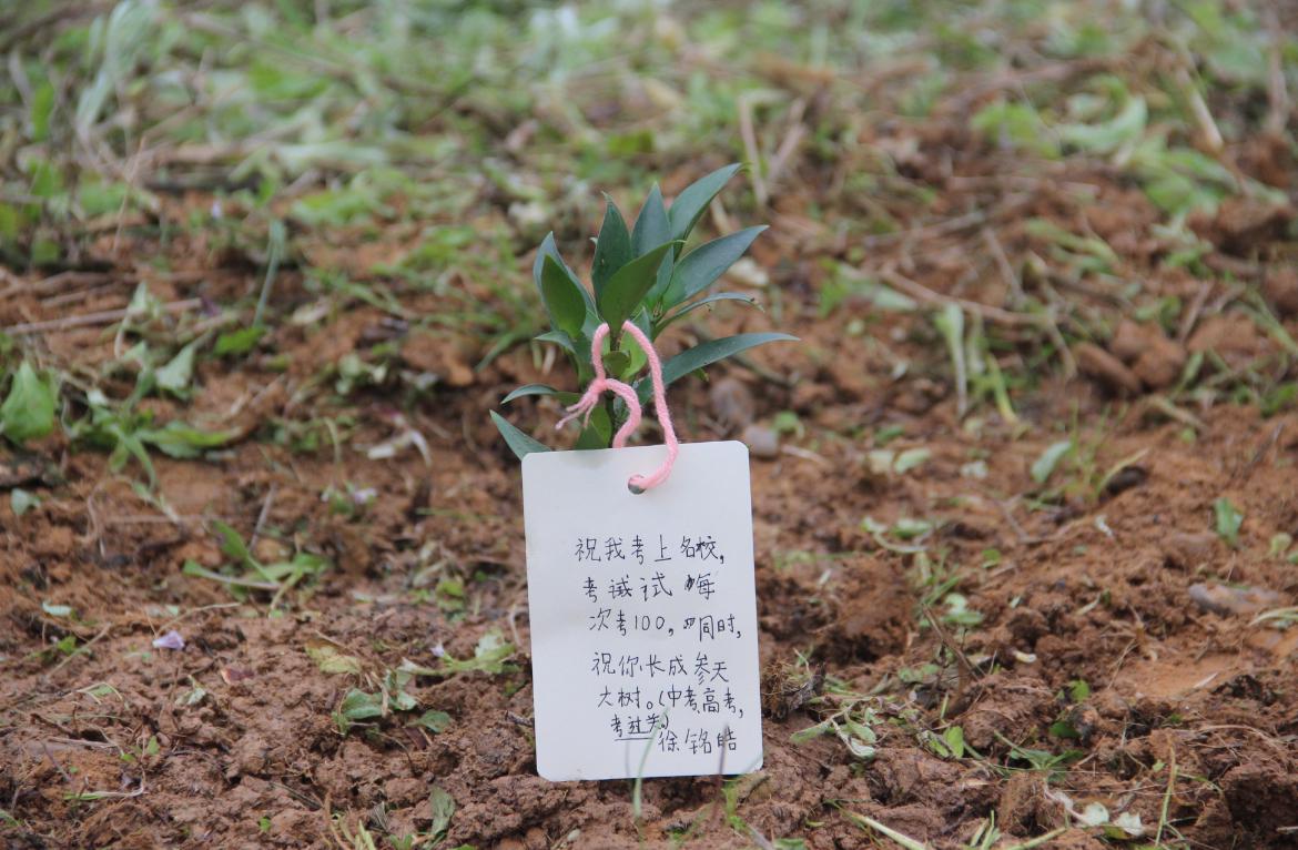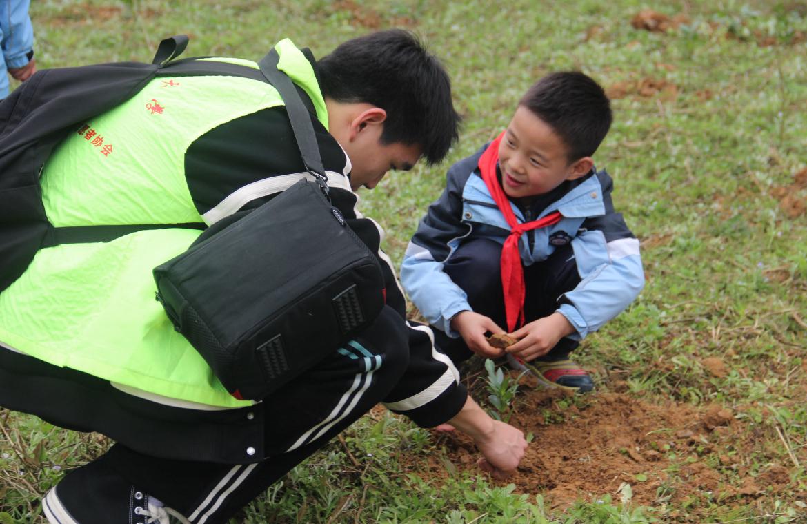在校内活动过程中,志愿者在食堂附近摆设活动摊位,吸引不少同学前来围观。同学们在绿色便签纸上写下自己的寄语和心愿,“种”下一颗颗心愿树,构成校园一道靓丽的风景线。在校外活动中,志愿者统一前往府荆小学和十位小朋友及其家长一起种植树苗。种植过程中,小朋友负责埋土浇水,志愿者则负责挖坑种树,同时为小朋友讲解植树的相关知识。不少家长见此情景表示,“本次植树活动很有意义,相信在志愿者的带领下,不仅可以增强孩子们的环保观念,而且能培养他们顽强拼搏、吃苦耐劳的品质。”植树结束后,志愿者和小朋友们一同将梦想和寄语写在树牌上,为此次活动划下完美句号。