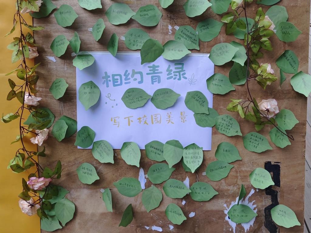 本次活动的主题为“树木拥有绿色,地球才有脉搏”。活动通过两种形式开展,同学们可以在便利贴上写下对校园景色的感触,将其张贴于树形宣传板上。除此之外,同学们也可以通过寻找工作人员藏好的花朵与绿叶来兑换植物种子,种下种子,相约一片青绿。在同学们的积极参与下,本次活动圆满结束。
