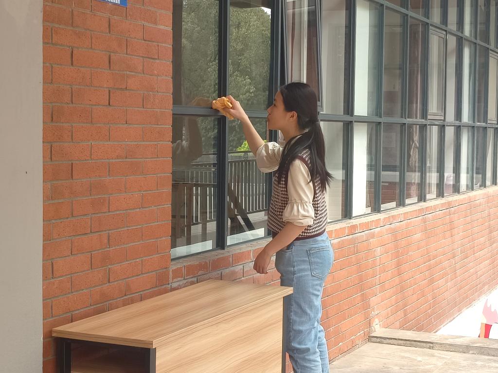 线下活动中,同学们分成小组,分别进行擦窗户、抹桌子、清理树叶等劳动活动,传递助人精神。线上活动过程中,参与学生通过在易班微社区发布自己参与志愿服务、帮助他人、服务社会的经历与故事,深入了解雷锋精神的内涵,传递了温暖和关爱。