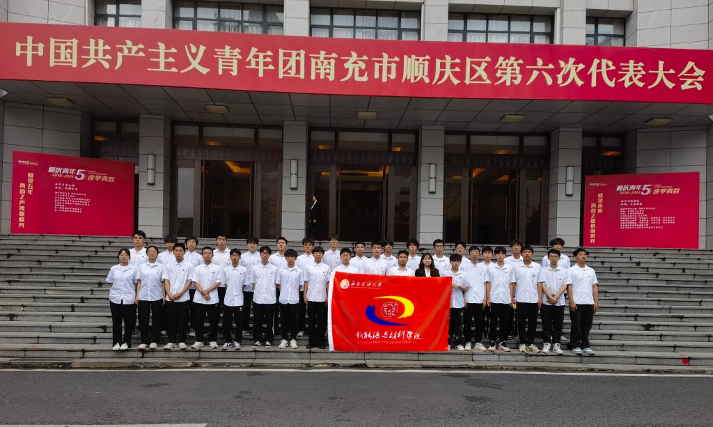 近日,中国共产主义青年团南充市顺庆区第六次代表大会在果城会堂召开,西南石油大学南充校区新能源与材料学院部分学生在杜建钢老师带领下代表西南石油大学南充校区参加会议。