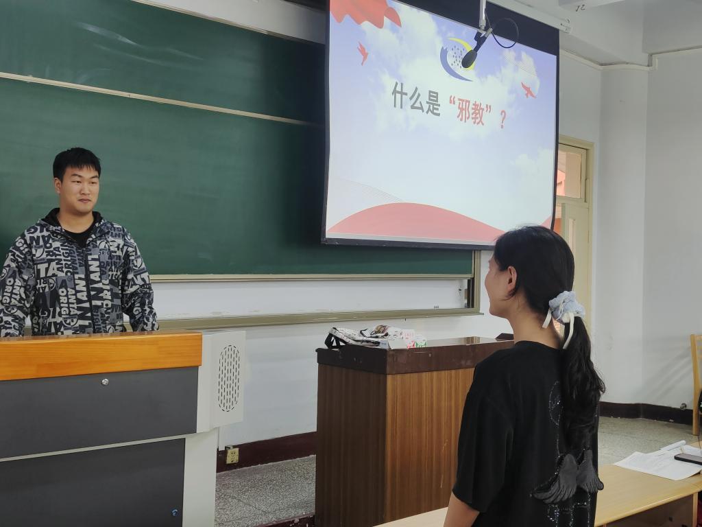 本次活动,由各专业班级团支书担任主讲人,以社会邪教恶性事件为切入点,为同学们普及反邪教系列知识,引导同学们自觉树立抵制邪教、远离邪教、反对邪教的意识,从而成为反邪教青年行动的一员。活动过程中,李红俊同学表示:“邪教伤害了太多家庭,同学们在保护好自己的同时,也要增强鉴别和防范能力,净化校园文化环境,不给邪教可乘之机。”