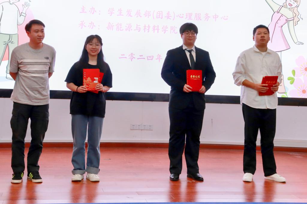 现场评委老师根据选手的演讲内容、演讲状态、演讲技巧三个方面进行打分,刘欣荣获一等奖,罗雪娟、钟心悦荣获二等奖,田宇博、叶兴华、廖冬妹荣获三等奖,龚重仁、卓娜、梁虞麟荣获优秀奖,评委老师现场给他们颁发了荣誉证书和笔记本,签字笔等活动纪念品,希望他们能够继续发挥所长,更多的关心自己和同学的心理健康。