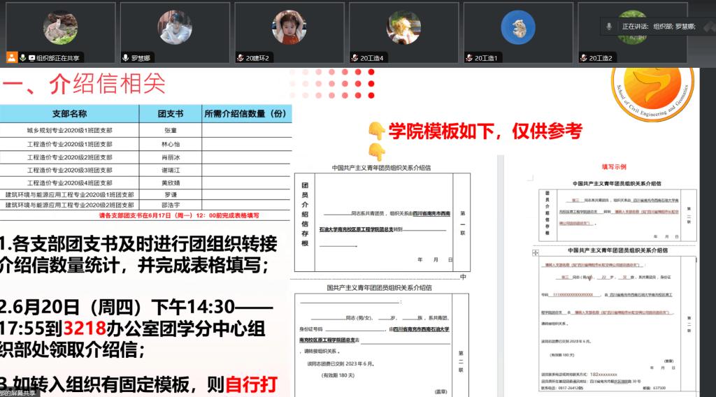 近日,土木工程与测绘学院团学分中心组织部开展了2020级团组织关系转接线上培训会。