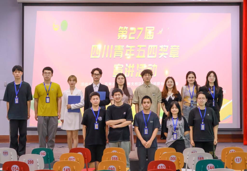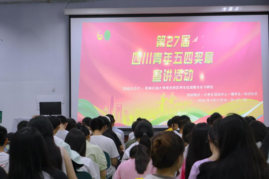 为深入学习宣传贯彻习近平总书记五四青年节对全国广大青年寄语精神,充分发挥先进典型在青少年思想政治引领中的示范作用,引领青年学生争做有理想、敢担当、能吃苦、肯奋斗的新时代好青年,6月17日下午,“青春为中国式现代化挺膺担当”——中国青年五四奖章宣讲活动在“一站式”学生社区举行。获2024年“南充新青年集体”的“西柚”新青年创新服务团队代表潘波分享了他立足岗位,矢志奋斗,努力为中国式现代化挺膺担当的青春故事。校区社团联合会指导教师吴澜婧、习研会全体人员、学生骨干和团员青年代表100余名学生现场聆听宣讲。