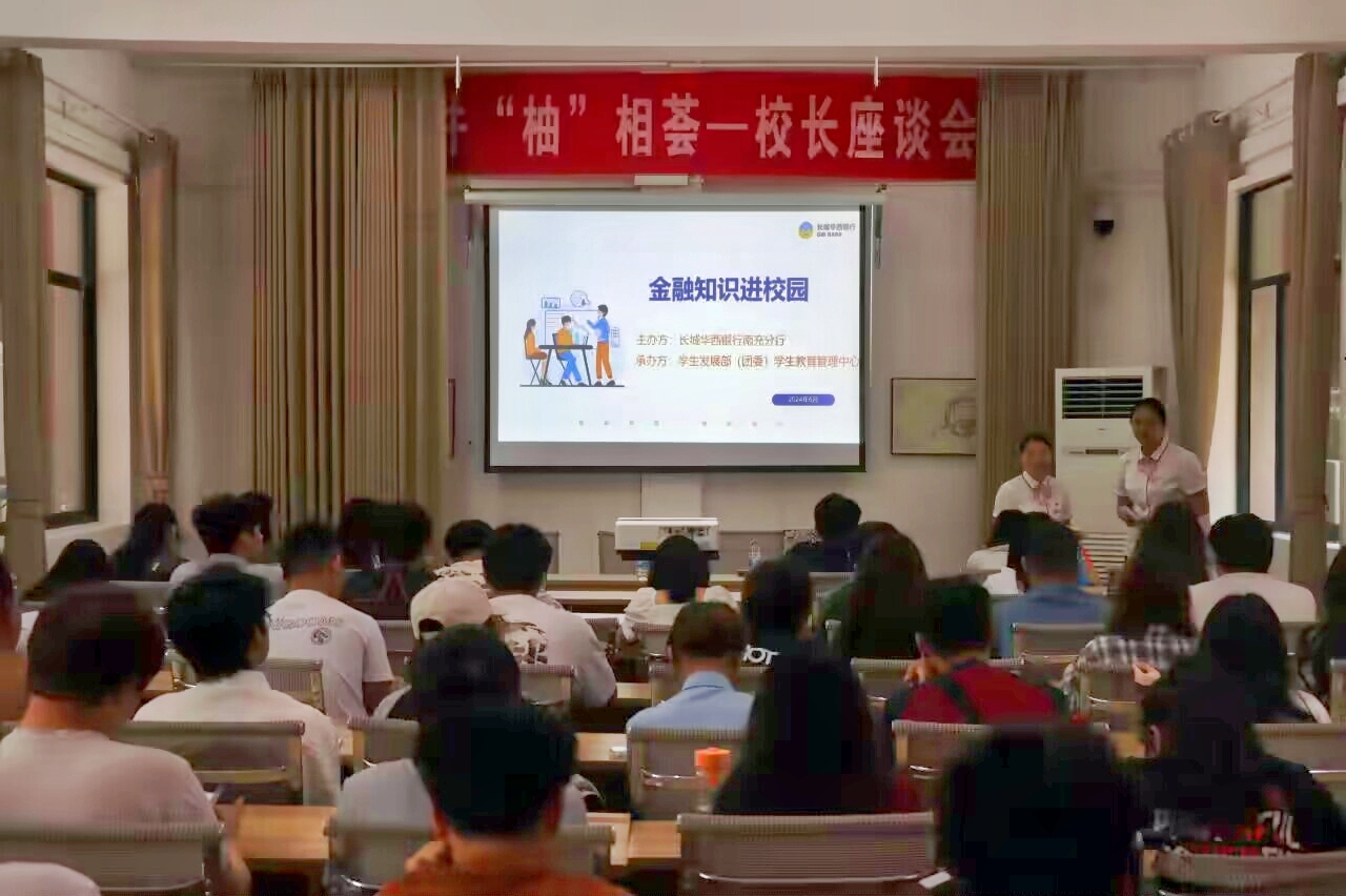 为加强校园反诈意识安全教育,进一步提高学生对电信诈骗的防范意识,切实保障学生财产安全,6月18日,学生发展部(团委)联合长城华西银行南充分行于外语村大厅开展“金融知识进校园”科普讲座。学生发展部(团委)副部长秦明旺,长城华西银行南充分行工作人员及各学院学生代表参与本次讲座。