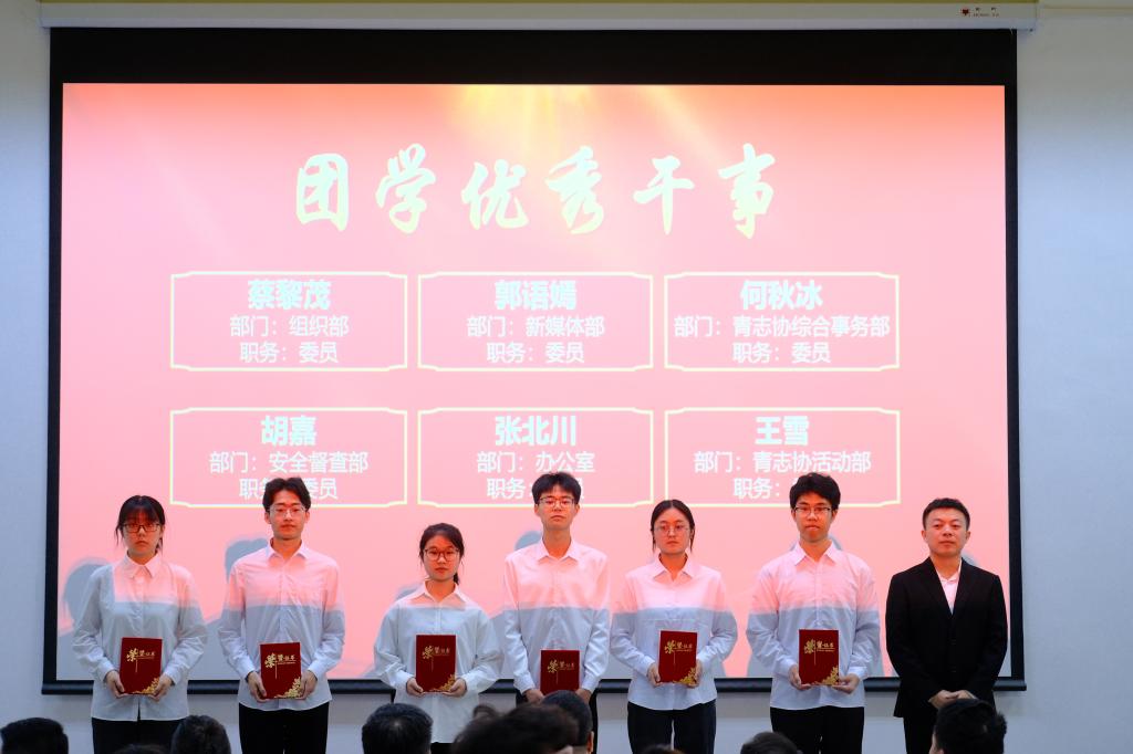 会上,潘海泽对同学们为学院团学工作做出的努力表示感谢,并从精神建设、学风建设、集体建设三个方面对新一届的学生干部提出要求和希望,勉励他们做能吃苦、敢担当,有理想,肯奋斗的大学生,以奋斗姿态铸就学院更美好的明天。随后,上一届主任团代表李志梅进行工作汇报总结,她从德、智、体、美、劳以及成果六个方面具体全面地展示了本学年以来团学分中心开展的各项活动以及取得的成绩。大会表彰了在过去一年的学习工作中表现突出的学生干部,为学生干部代表颁发聘书。
