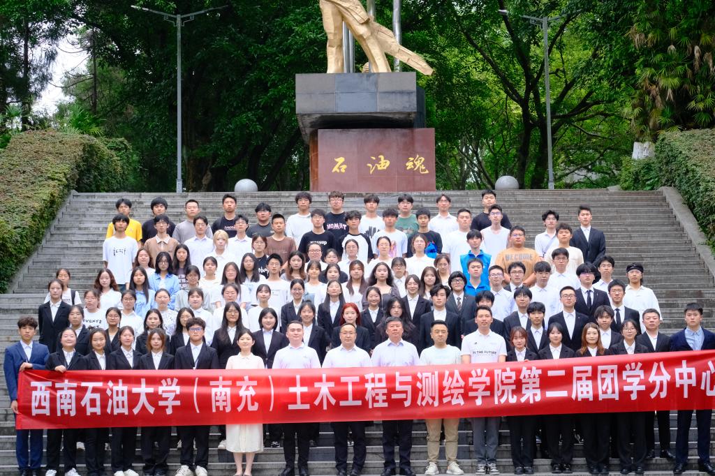 表彰后,大会进行工作牌授予仪式。新一届的学生团委副书记和主任团在院旗下郑重宣誓,他们将不负使命,做好引领模范带头作用,推动学院团学工作向更高的方向发展。 最后,全体师生在石油魂合影留念结束了本次活动。