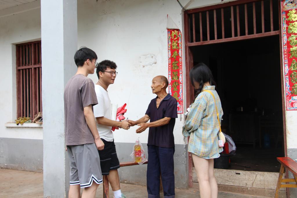 进入谢家村后,志愿者首先关心脱贫老人身体状况,并对其诉求及愿望进行记录,以便后续活动开展。随后,志愿者们与脱贫代表简婆婆共同走进农田,了解经济作物的种植情况,走访结束后,志愿者们赠与老人食物油等生活用品。