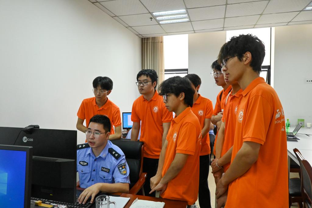 交流会后,队员们参观了反诈中心警官们日常工作的场景,并与警官们面对面交流。这进一步丰富了队员们的反诈知识,为后期宣讲活动的开展带奠定了基础。