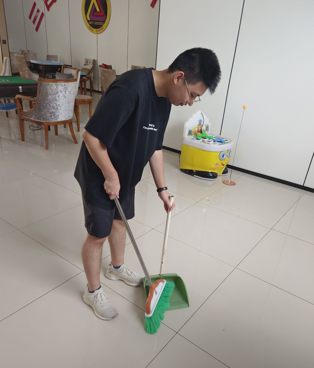 图为实践队员打扫卫生