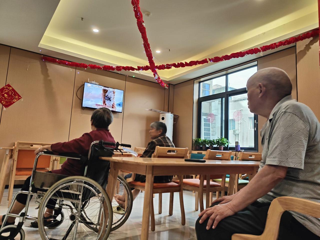 图为实践队员陪老人们看电视